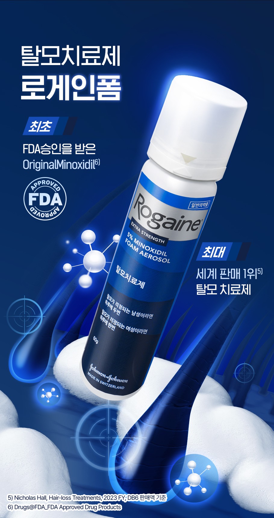 머리카락이 짧거나 정수리, M자 탈모, 민감성 두피 등은 거품 형태의 로게인 폼이 도포 및 흡수에 더 편리합니다.