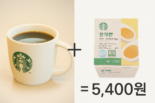 특히 정신없는 아침 빠르고 부담 없이 스타벅스 숏사이즈 3,700원 + 한개란 1,700원 = 5,400원으로