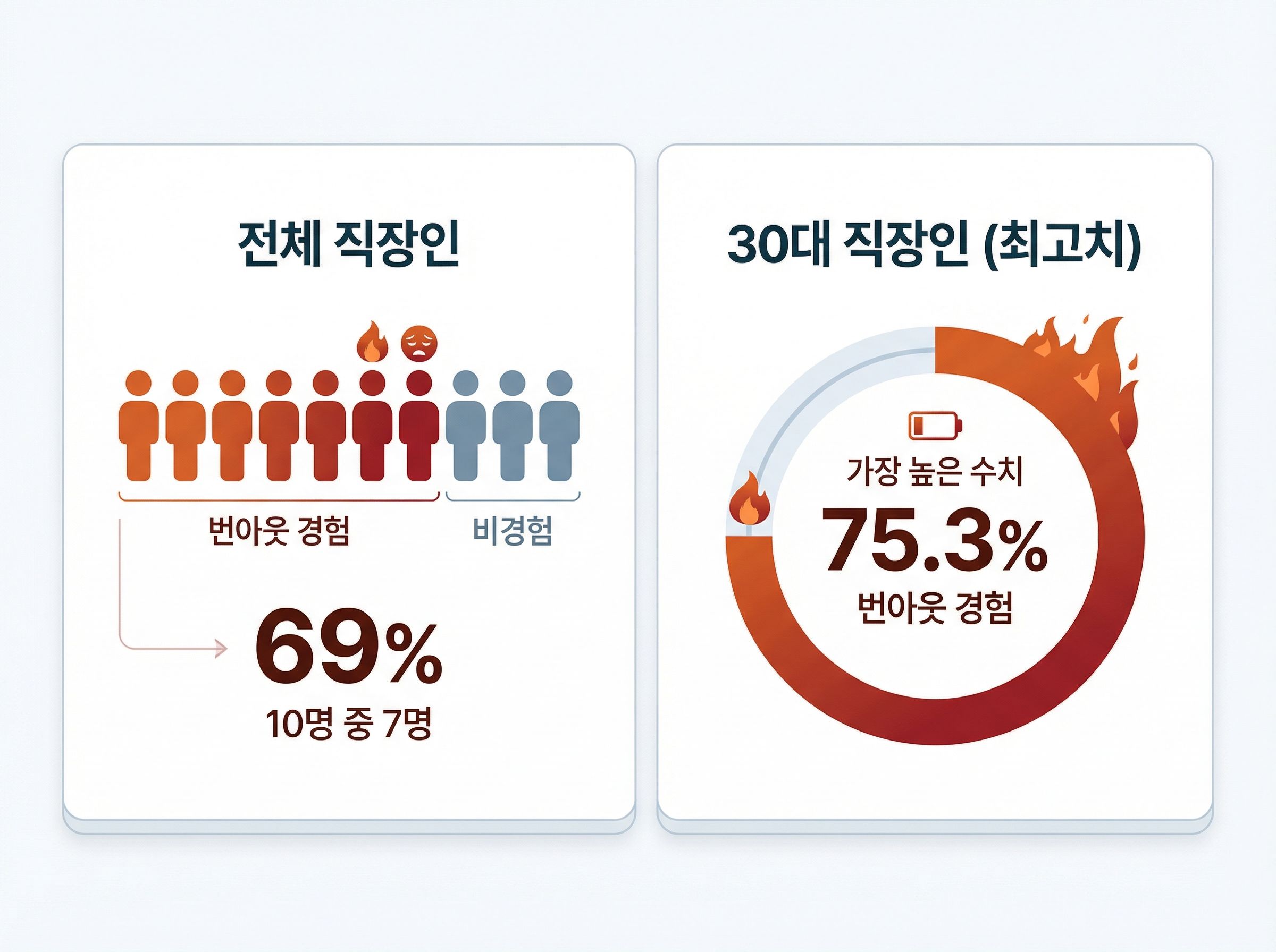 번아웃 위험군 비율이 전년 대비 10.6% 증가했고,